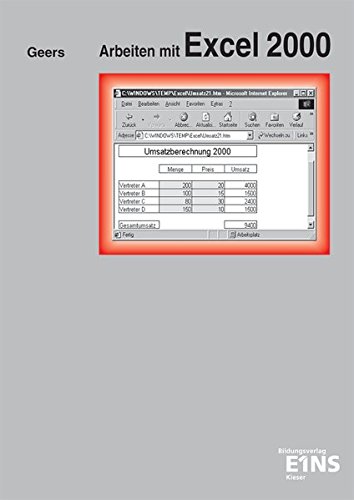 Such is the Article [pdf]Arbeiten mit Excel 2000 / Tabellenkalkulation, Geschäftsgrafik und Datenbank mit Übungen und handl_3824265516_drbook.pdf